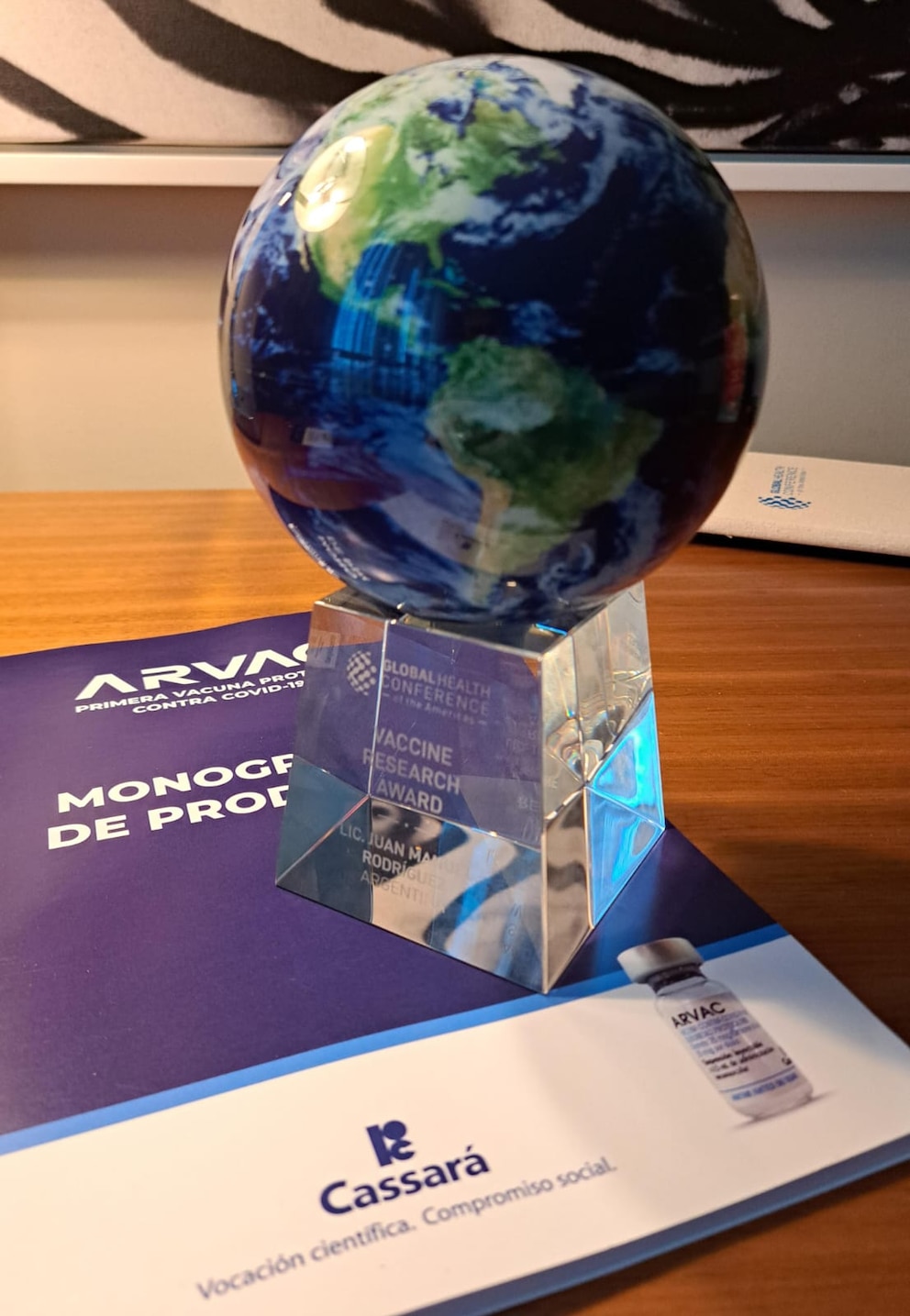 La ciencia argentina recibió un nuevo reconocimiento mundial. Desde el Laboratorio Pablo Cassará, Juan Manuel Rodríguez, quien lidera el equipo de tecnología por el desarrollo de la vacuna ARVAC y es jefe del Área de I+D en Biofármacos del Laboratorio Pablo Cassará, recibió el Premio a la Investigación en Vacunas en la Conferencia sobre Salud Mundial del Américas 2024, que se llevó a cabo en Florida, Estados Unidos.